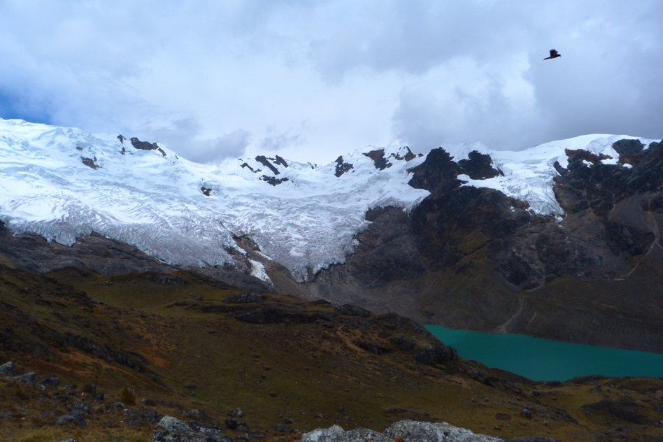 Na szczęście po podejściu do pierwszej przełęczy, było już nieco lepiej, a widok, który wyłania się w tym miejscu – ośnieżone szczyty i laguny zdecydowanie motywuje. Możliwe jednak, że w dalszej drodze pomogły rytuały, które wykonaliśmy na przełęczy, czyli złożenie ofiary dla Pachamamy (Matki Ziemi) z liści koki. W ten sposób ową Pachamamę przekonaliśmy, że przyszliśmy w dobrej wierze i zostawimy wszystko w takim stanie, w jakim to zastaliśmy (sądząc po walających się gdzieniegdzie śmieciach, chyba nie wszyscy złożyli taką ofiarę).