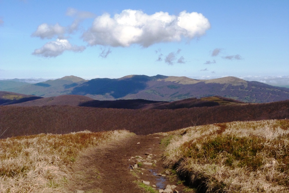 Bardzo urokliwy, dość długi, ale łatwy i, co dziwne, niezdominowany przez tłumy turystów szlak. Pierwszy odcinek, czyli na najwyższy bieszczadzki szczyt – Tarnicę najlepiej zrobić z Ustrzyk Szerokim Wierchem. Znacznie ładniej i przede wszystkim mniej tłoczno niż na szlaku z Wołosatego na Tarnicę. Podejście dla niewprawionych może być troszkę męczące, ale jakoś szczególnie trudno nie jest. Na Tarnicy niestety prawie zawsze sporo ludzi. Widoki niezłe, ale najlepsze zaczyna się potem.